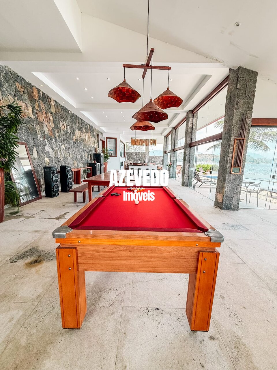 O imóvel ainda conta com deck com heliponto, além de estrutura náutica com cais e três poitas para atracação de embarcações acima de 100 pés, ideal para quem possui lancha ou iate.